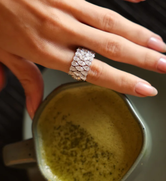 Um clássico que reflete o novo brilho de quem se redescobre. A aliança Helena traz elegância atemporal em prata, com Moissanites cravejados por toda a extensão. Uma joia que simboliza permanência, mas também recomeços — como os que nascem de dentro para fora.