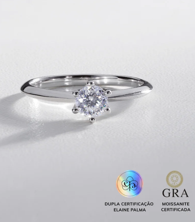 Sua compra é totalmente segura: essa joia acompanha a certificação exclusiva Elaine Palma, que atesta a excelência da gema, além do certificado internacional GRA. Esse instituto gemológico de prestígio valida a autenticidade e qualidade das Moissanites, assegurando sua beleza incomparável e a confiança de adquirir uma joia de altíssimo padrão.