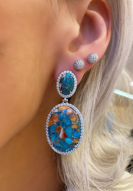 PEDRA ; MOSAICO DE TURQUESA E ZIRCONIAS