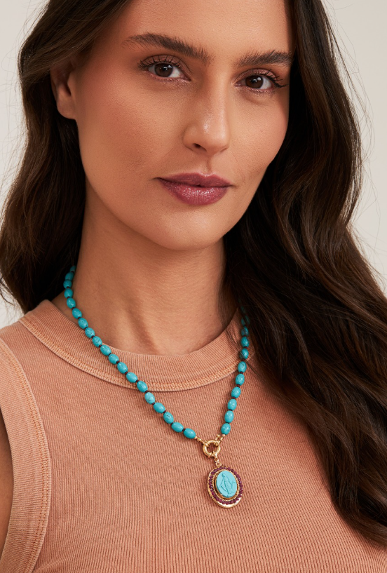 PEDRAS , COLAR DE TURQUESA COM RELICARIO DE RUBI