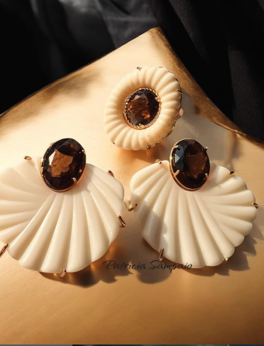 PEDRAS ; CRISTAL FUME E BAQUELITE OFF-WHITE