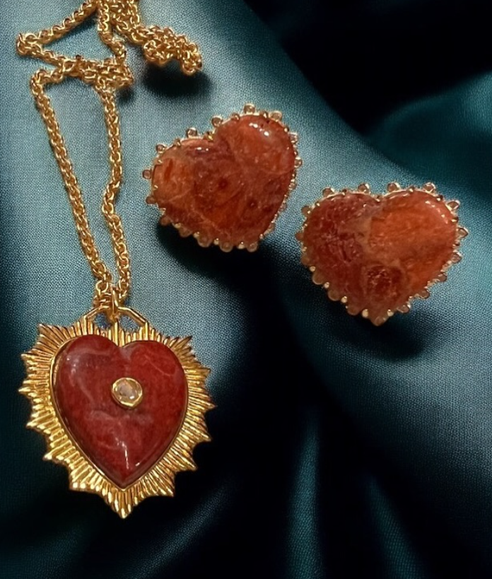 PEDRAS ; CORAL NATURAL VERMELHO E ESPINÉLIO